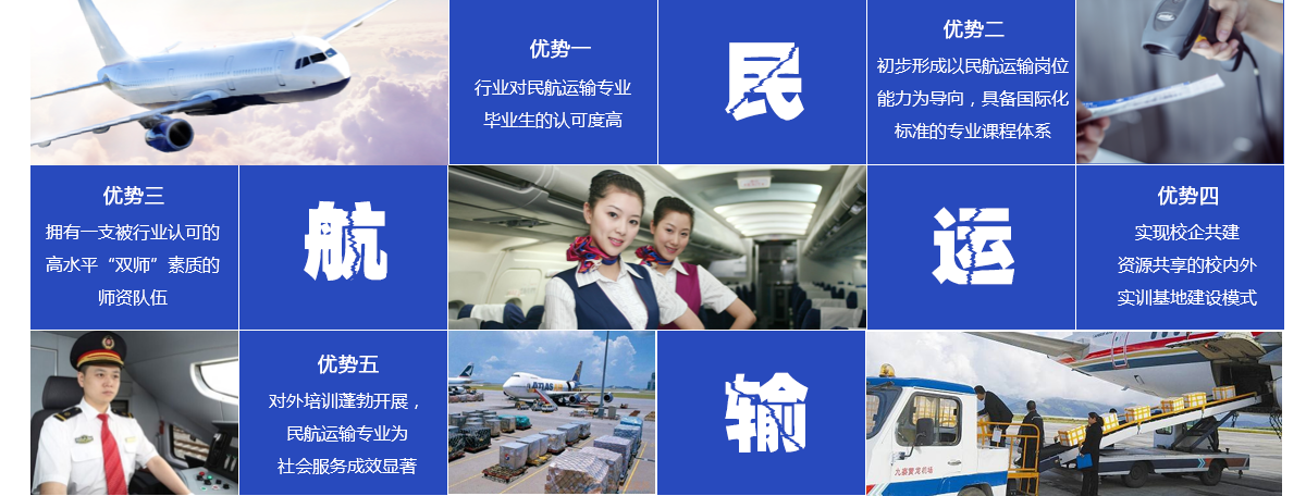 民航运输管理专业介绍:本专业充分利用中国民航航空运输客货销售代理业务高级培训机构和国际空运输协会授权培训单位的优势,积极面向社会,开展民航运输专业培训,本专业培养具有良好诚信品质、敬业精神和可持续发展能力,胜任民航运输工作的高技能人才,民航运输专业立足于民航业发展需要,以就业为导向,以服务求支持,以质量求生存,以特色求发展,毕业生在就业单位的问卷调查显示:企业认可度高、岗位技能胜任力强、业务发展的成长性好。 民航运输管理专业就业前景:目前,高等院校航空服务相关专业极其罕见,民航总局已经意识到行业人才缺乏,已成为制约行业发展的瓶颈,在“十一五”规划中明确提出,欢迎各种力量参与兴办与民航相关的教育事业,鼓励各类高校开设民航专业。2009年航空货运增长率世界第一,航空客运增长率世界第二。在4亿元拉动内需政策支持下,民航总局公布了未来两年巨额的机场建设投入计划,资金规模高达4500亿元,加上今年用于新建、改扩建机场投入300亿元,近三年,有超过5000亿资金流向机场建设项目。随着全球经济一体化进程加快,中国民航业将呈现出更加迅猛发展态势,据世界主要飞机制造商研究机构预测,在今后时间里,中国将成为全球飞机需求量最大的航空市场,2010年民航运输飞机达到1550架。据国家外派机构预测,仅国外航空业和旅游业的高级服务人员每年就需要从我国输出近2万人。国内外航空业、旅游业的持续稳定发展,必将为航空专业的毕业生提供更加广阔的就业空间,目前国际空乘年薪范围约10万-20万元。从国内现有薪资水平看,国内主流航空公司优秀空乘人员平均年薪在10万人民币以上,同时因其专业性和供应不足,其职业稳定性得到保证。我国正处于从民航大国向民航强国的转变过程中。2014年:未来5年中国将成为世界最大的航空行业增长国家;2020年:中国新增2600多架飞机,每周航班从406个增加到1674个。 民航运输管理专业学习课程:管理学基础、经济法、空运市场营销、民航国内旅客运输、民航国际旅客运输、民航国内货物运输、民航国际货物运输、民航国际结算、危险品运输、飞机载重与平衡、物流概论。 民航运输管理专业培养目标与要求:培养掌握必要的民航运输管理专业基础知识和技能、能从事民航运输服务及航空延伸服务的高级技术应用性专门人才。 民航运输管理专业就业方向:本专业学生毕业后可从事于航空公司、机场公司、航空运输代理公司、航空物流园区等企业的生产经营管理与销售服务部门,以及民航运输机场等延伸机构的相关岗位。主要岗位有民航票务销售、地勤、值机、客服、航空货运代理。 民航运输管理专业就业方向:本专业学生毕业后可从事于航空公司、机场公司、航空运输代理公司、航空物流园区等企业的生产经营管理与销售服务部门,以及民航运输机场等延伸机构的相关岗位。主要岗位有民航票务销售、地勤、值机、客服、航空货运代理。